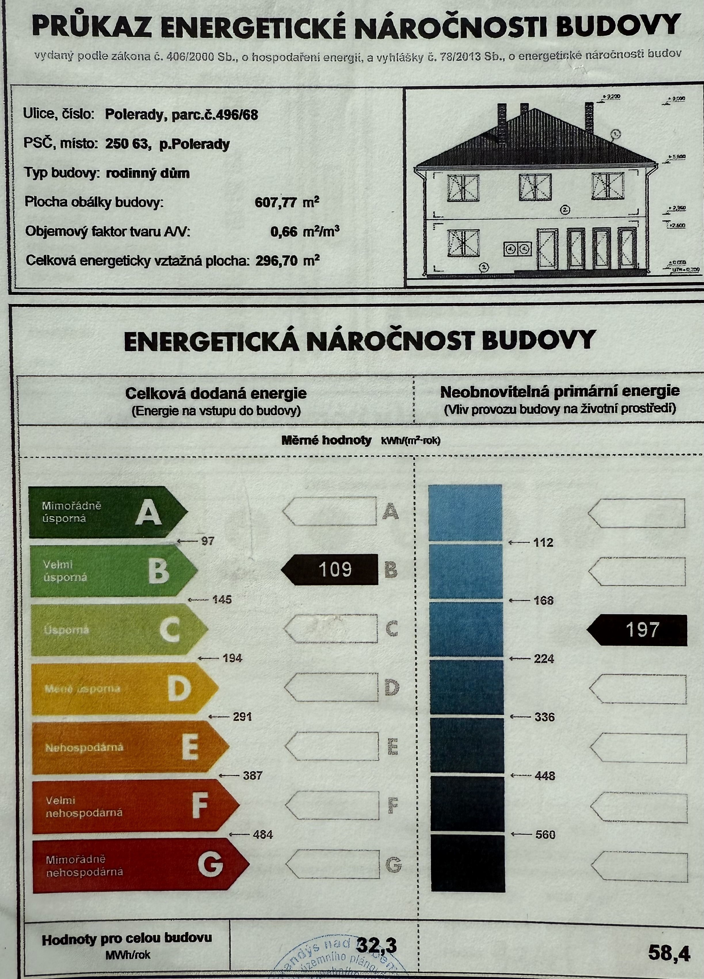 | Ukazatel ENB | 109 kWh/m2 za rok |